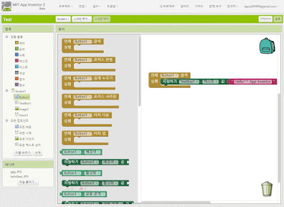 만드는 방법은 스크래치와 매우 유사합니다. 어린이도 몇번의 클릭만으로 스마트 폰 앱을 만들 수 있지요. 앱 코딩 순서는